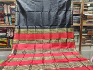 Royal Charcoal Black BLP Matka Silk Saree with Crimson Red Border