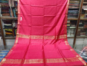 Traditional Rani Pink Soft Linen Matka Saree with Golden Zari Border