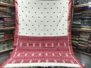 Elegant White & Crimson Red Soft Khadi Pure Cotton Saree
