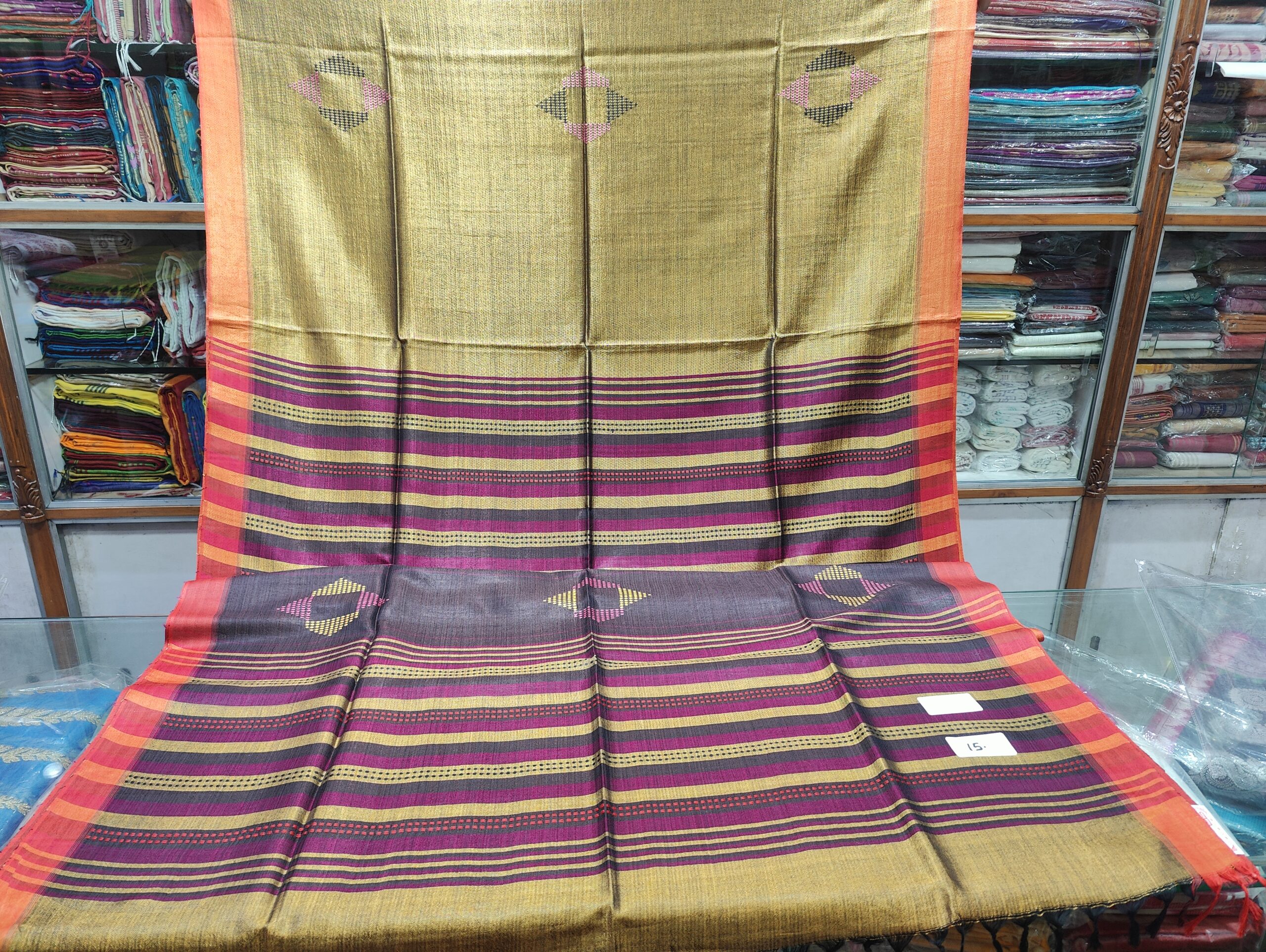 Work: Micro-check Grid Pattern with Silver Zari Border
