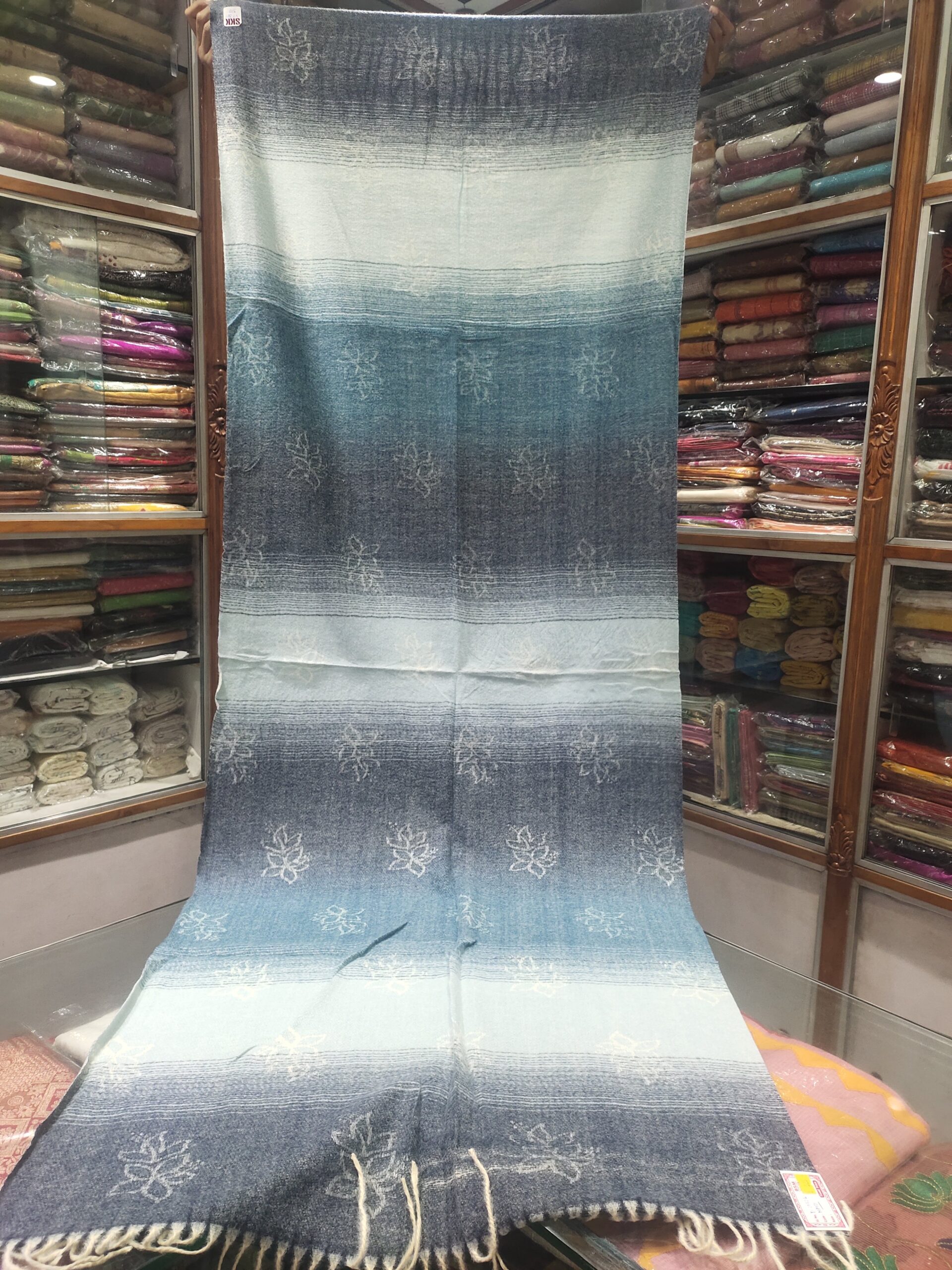 Add a touch of warmth and style to your winter wardrobe with this elegant woolen stole from our Special Winter Collection. Featuring a soothing gradient of blue and white, this stole blends comfort with contemporary design. The soft wool fabric ensures you stay cozy without compromising on style, making it perfect for chilly days and festive occasions alike.