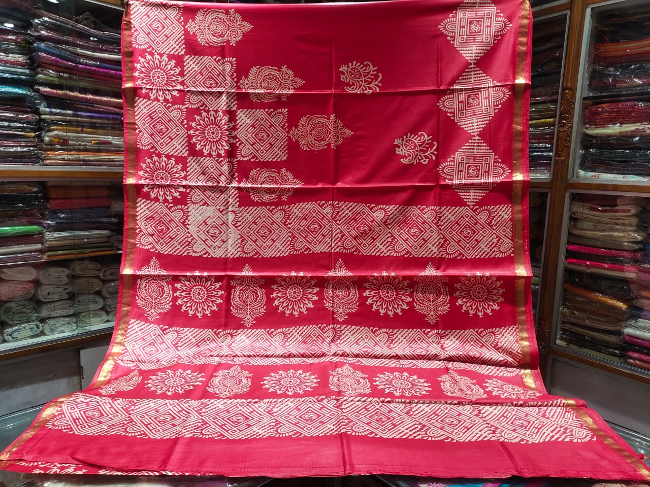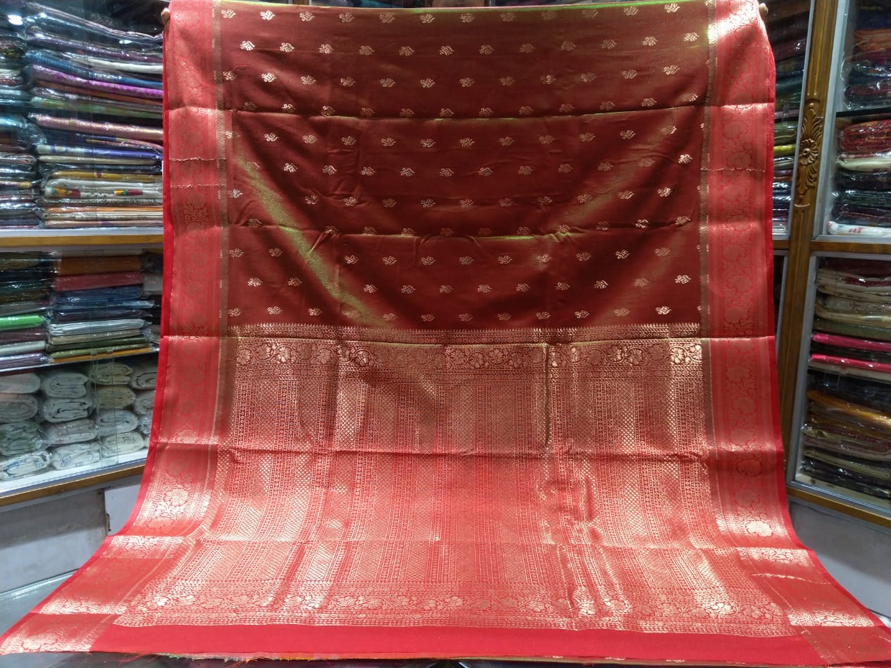 Dry clean only to preserve the shine of the silk and the intricacy of the zari work.
